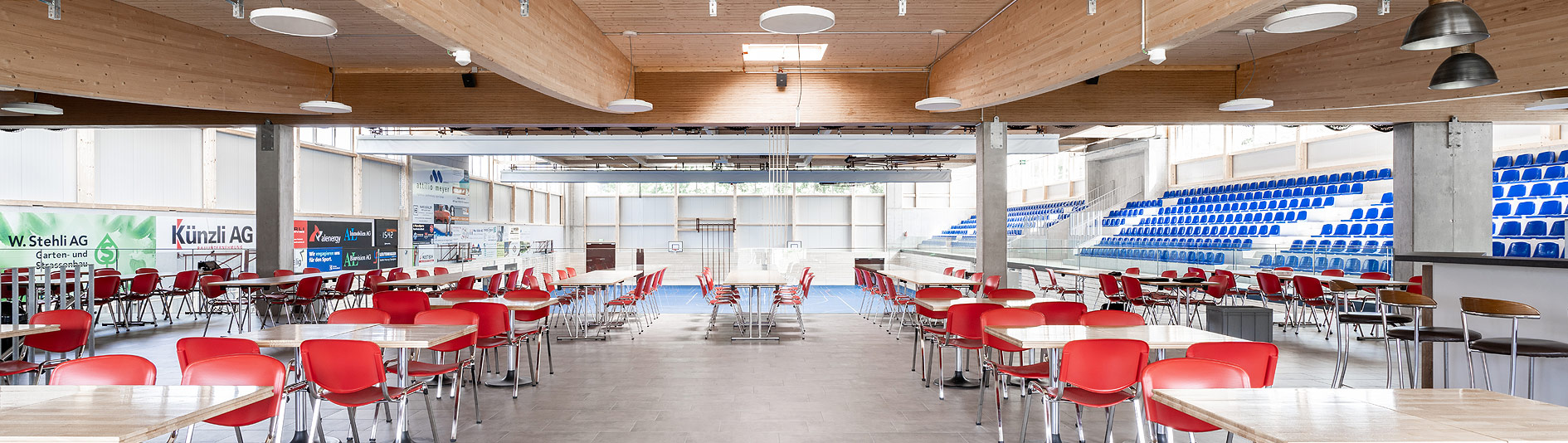 Es stehen 29 Tische (160/80 cm) und 114 Stühle zur Verfügung.