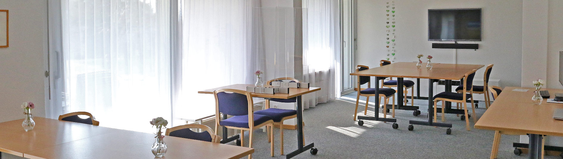 Techn. Infrastruktur: Beamer, Fernsehen, Leinwand.
