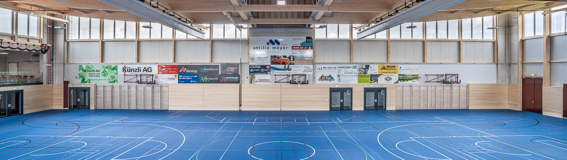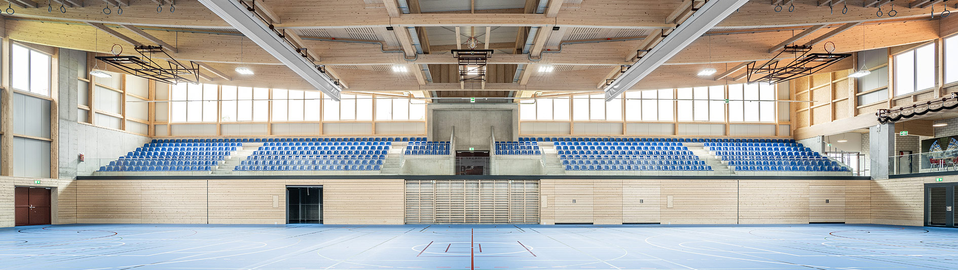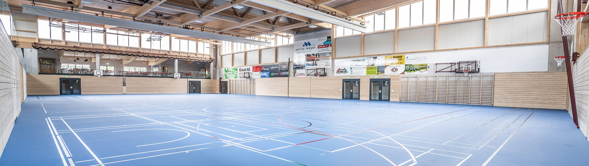 Die Turnhalle verfügt über einen Geräteraum. Es stehen Garderoben mit Duschen zur Verfügung. Zudem kann das Bistro dazu gemietet werden.
